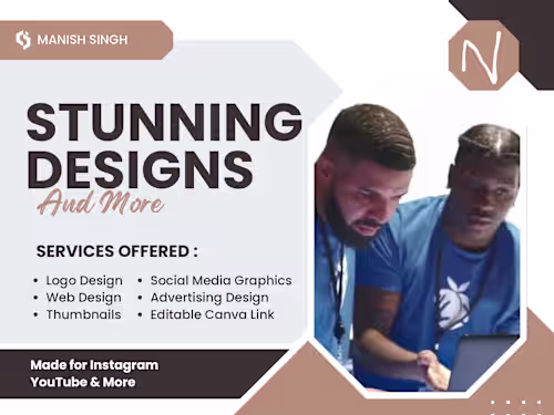 High-quality, polished designs for social media, posters, thumbnails, or marketing materials. Format: PNG (for digital), JPG (for web use), PDF (for print) Revisions: Up to 2 included (additional revisions extra)
