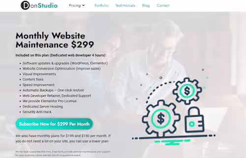 We will take care of your website on a monthly basis, more info here https://donstudio.com/monthly-website-maintenance-299/