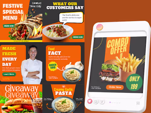 Custom-designed social media posts. Optimized visuals for all platforms (Instagram, Facebook, etc.) Branded graphics and layouts Engaging content for promotions or announcements, Consistent design themes for campaigns.
