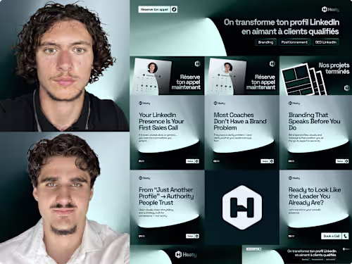 Profile photos (or raw images), LinkedIn URLs, roles/titles, brand preferences, and any existing logo or color guidelines. If you don’t have branding yet, I can create it from scratch.