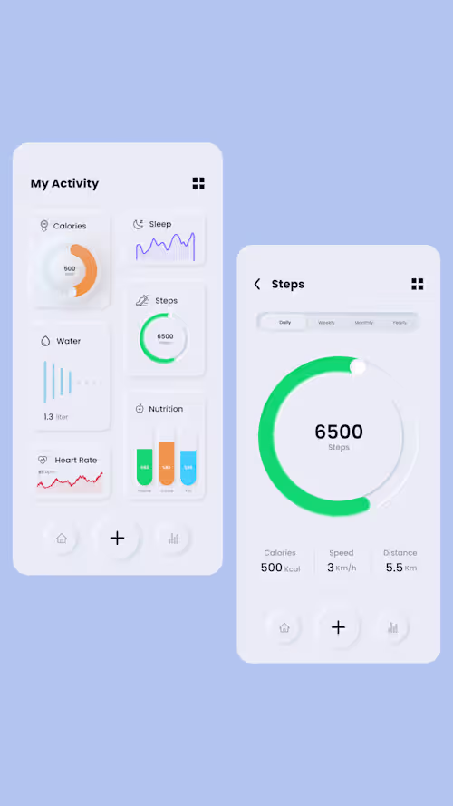 Visual mockups and layouts for web and mobile apps created in Figma.