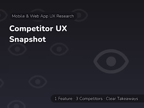 This service covers one feature or user flow across three competitor apps. If you'd like a broader analysis, we can discuss an extended scope.