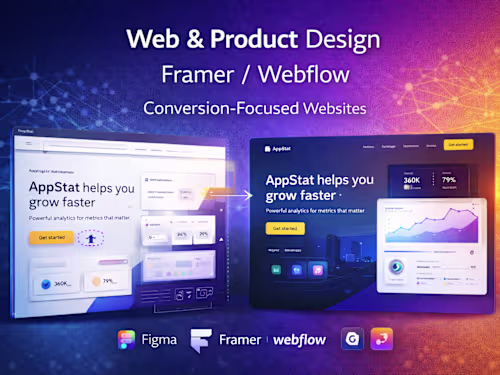 High-impact landing pages designed to clearly communicate value and drive signups, demos, or sales. Deliverables • Messaging & layout structure • Conversion-focused UI design • Framer or Webflow implementation • Mobile-optimized layout • CTA optimization Typical Budget: $1,500–$3,000