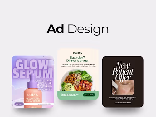 - 1–3 custom-designed ad creatives (static or animated) for Meta (Facebook/Instagram), Pinterest, or Google - Ad formats optimized for each platform (square, story, reel, carousel, banner, etc.) - Clear, high-converting CTAs and copywriting (or using client-provided copy) - Brand-aligned visuals tailored to the audience and campaign goals - Exported assets ready for upload (JPG, PNG, or video format) - Optional add-on: Figma or Canva editable file - Delivery with basic ad structure recommendation (headline, body, CTA suggestion)
