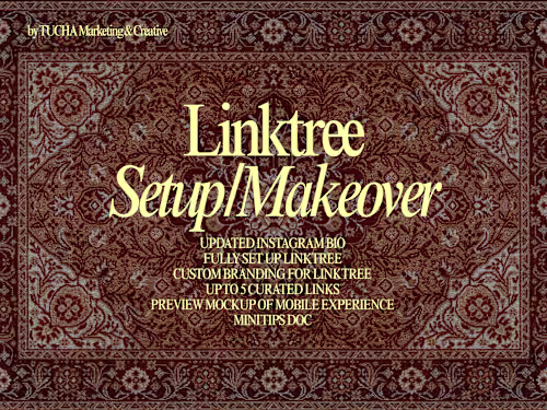 Updated Instagram bio (rewritten for clarity & tone) Fully branded Linktree setup (color, layout, icons, etc.) Up to 5 custom link titles and placements Profile image or logo upload Mobile preview mockup (optional) Mini tips doc to manage and update your Linktree