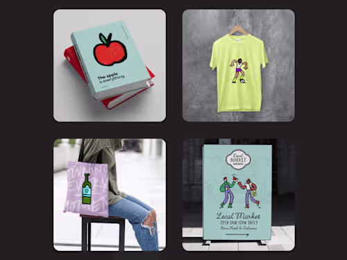 Illustrations in a warm handmade style that embraces big bold line work with tiny yet intentional imperfections creating a charming and authentic aesthetic. Ideal for icons, campaign illustrations, brand licensing or marketing materials.