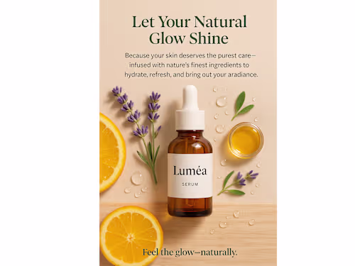 A professionally designed ad for Luméa Serum, featuring soft and elegant colors, modern composition, and high-quality visuals. Perfect for social media or digital promotion.