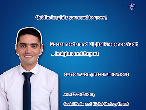 A detailed report analyzing up to 3 social media platforms and your website’s basic messaging and visual alignment. Includes performance metrics, engagement insights, brand consistency, and profile effectiveness. Format: PDF or Notion link Includes: Screenshots, charts, and personalized written analysis Website section includes: - Homepage review (messaging, CTA, visuals) - About/Contact page clarity - Consistency with social media tone and branding