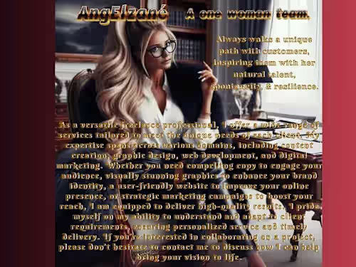 Sent from above, in my one woman team I always walking a unique path with client. With a natural ability to connect with everyone makes business partners for life not just once off. No task is impossible as I take challenges head-on, picking up the whole bull, not just by the horns. I have a passion for my freelance services, inspiring clients with my natural talent, spontaneity, and resilience
