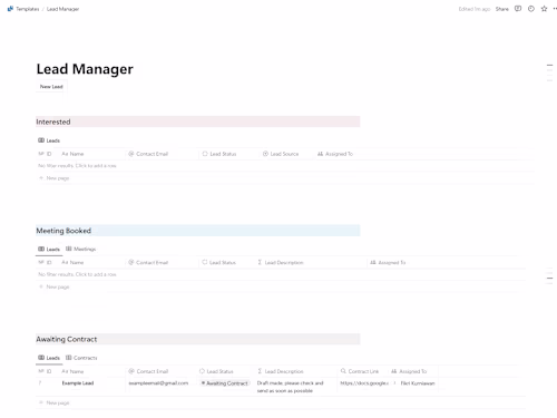 Notion page that contains the leads