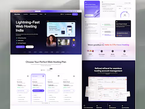 A modern, high-converting landing page design for a web hosting company. Includes pricing tables, hosting plan comparisons, feature highlights, and call-to-action sections. Designed with a clean layout, engaging visuals, and responsive-ready structure to ensure clarity, trust, and seamless user experience.