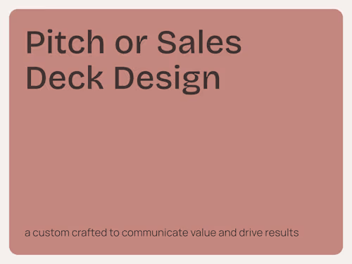 This package is $2,400 because it covers not just design, but narrative strategy, visual storytelling, copy refinement, and a polished, professional deck ready to present. For smaller needs, such as shorter decks or light design support, I can create a custom quote.