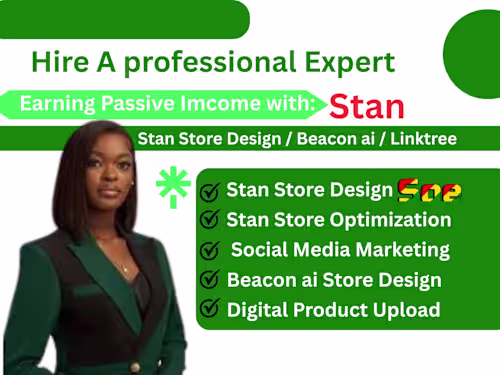 I WILL STAN STORE DESIGN | BEACONS AI STORE | STAN STORE STORE SETUP | PAYHIP STORE | BEACONS AI DIGITAL PRODUCTS | ETSY STAN STORE | PENSIGHT STORE | DIGITAL PRODUCT UPLOAD | DIGITAL PRODUCTS STAN STORE. Welcome to my gig profile dear buyer, Are you ready to make passive income in your stan store? even when asleep, I am the perfect person to hire for that, or you need to take your store to the next level? I will help with building your stan store from scratch to becoming a passive Income Source.