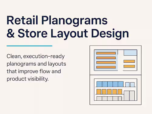 A custom-designed retail planogram or store layout focused on improving product flow, visibility, and organization. Delivered as clear, execution-ready visuals your team can easily follow.