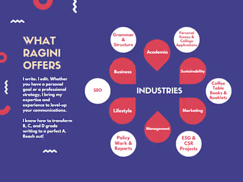 Ragini has been working with me as an editor for about 3 years. She is prompt in understanding the assignment and is able to portray the message I need clearly. Her suggestions helped improve the overall effectiveness of our work. I highly recommend her service to anyone who wants valuable feedback on their writing and marketing at any stage.