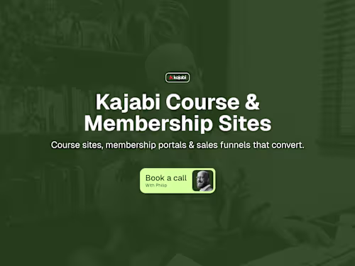 Your entire Kajabi site configured and designed: course pages, membership areas, sales pages, and checkout flows. Everything branded and ready to sell.