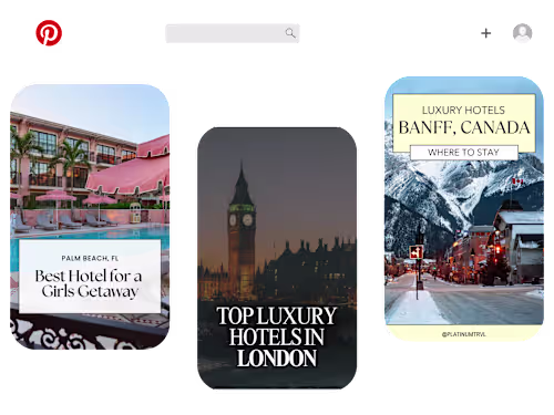I’ll help your hotel grow its online presence with Pinterest marketing that drives clicks, saves, and long term visibility. This package includes custom pin designs tailored to your property, keyword rich descriptions, and a strategic posting schedule that helps your hotel get discovered by future guests searching for travel inspiration. Whether you're launching a new property or refreshing your current content, I’ll create on brand, visually compelling pins that showcase your rooms, amenities, and guest experience. Pinterest is where travellers go to plan, and with the right strategy, your hotel can show up where future guests are actively planning their next stay.