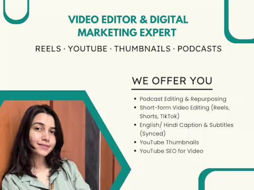 Professionally edited videos optimised for social media platforms like Instagram, Youtube Shorts and Tik-tok, including cuts, transitions (where needed), background music and Synced captions. We can discuss price according to desire duration & no of shorts.