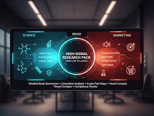 A comprehensive synthesis of your product’s scientific landscape. I identify the "Unique Mechanism" and translate complex biochemistry into a clear, persuasive narrative for your marketing team.
