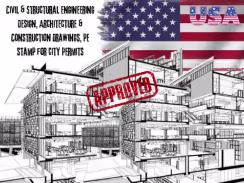 You will receive professionally reviewed and PE-stamped structural or civil & MEP engineering plans, compliant with local building codes in California(CA), Florida (FL), Arizona (AZ), Indiana (IN), Kansas (KS), Maryland (MD), Missouri (MO) and other states. As a licensed professional engineer with years of experience in residential, commercial, and industrial projects, I specialize in ensuring your plans meet all state and municipal permitting requirements. Whether you're an architect, contractor, developer, or homeowner, I provide reliable and legally recognized engineering stamps that will move your project forward with confidence.