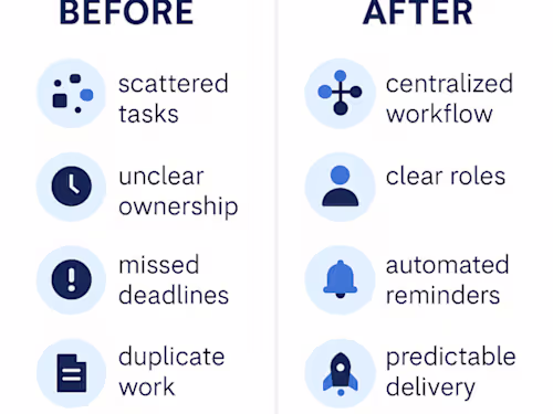 I supported companies by optimizing their business operations and designing scalable workflows that reduce inefficiencies and improve delivery speed. My role covered analyzing existing processes, identifying bottlenecks, and creating clear systems using tools like Notion, Airtable, Google Workspace, and automation frameworks. I have designed end-to-end workflows for content pipelines, cross-functional collaboration, asset management, and review processes. These improvements enabled teams to increase output, reduce manual tasks, and improve communication between business, creative, and technical stakeholders. This project showcases how I build operational systems that are easy to use, highly organized, and ready for teams who need structure to scale.