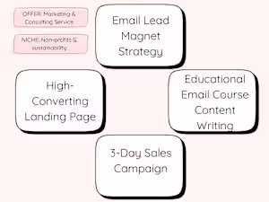 - Lead magnet creation (PDF, quiz, or mini-course) - Copy for landing pages or opt-in pages - LinkedIn or social content to drive traffic to the list - Audience survey for tone-of-voice and offer insights