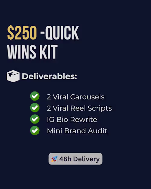 Viral IG Kit: 2 Carousels, 2 Reels, Brand Audit + Bio in 48H 🔥
