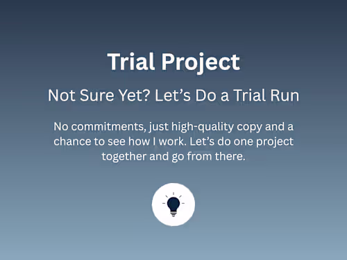 Up to two rounds of edits to make sure the copy fits your needs - one focused on content and structure, the other on language and tone.