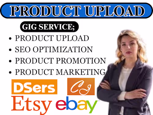 ✅ Product Upload & Listing Setup Upload up to [insert number] products per platform Accurate categorization and tagging Variants configuration (size, color, style, etc.) ✅ SEO Optimization for Listings Optimized product titles using high-traffic keywords Engaging and keyword-rich product descriptions Search-friendly image file names and alt text (where supported) ✅ High-Quality Product Formatting Clean formatting of product info (price, SKU, tags) Consistent branding across all listings Inventory syncing support (if applicable) ✅ Platform-Specific Optimization Etsy: Tags, materials, occasion, style settings eBay: Item specifics, return policies, shipping setup Shopify: Collections, metafields, SEO URL structure Poshmark: Category matching, color & brand tags Others (upon request): Depop, Facebook Marketplace, etc. ✅ Image Upload & Optimization Upload of professional or provided images Cropping/resizing for optimal display Naming for SEO where supported ✅ Basic Competitor/Market Review (Optional) Light keyword/price research for positioning Tag comparison with top sellers in your niche ✅ Delivery Summary Report PDF or Google Doc summary of completed listings SEO keywords used Suggestions for future growth