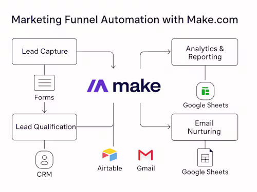 A complete Make.com workflow that connects your lead forms, email tools, and CRM to automate lead capture, nurturing, and conversion tracking.