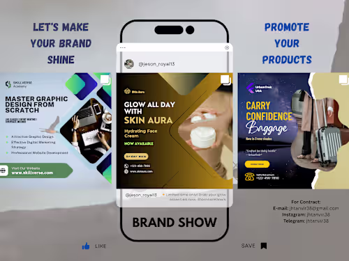 You will receive 2 custom-designed branded posts, created with your niche, color scheme, and audience in mind. Each post will include: ✅A high-quality .png design ✅On-brand text and layout ✅Caption or promotional line ✅Mockup display (e.g., Instagram UI or iPhone screen)