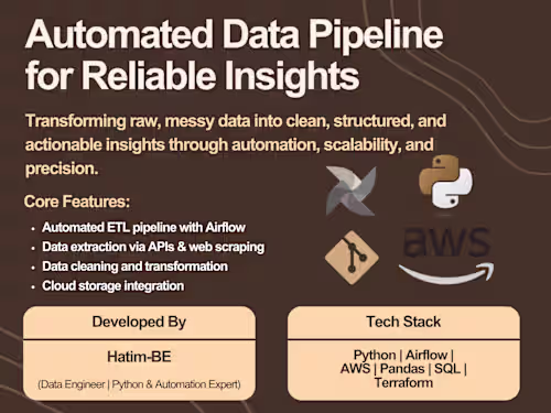 - Python scripts or Jupyter notebooks automating data extraction, cleaning, and transformation. - Includes documentation for setup and execution. - Delivered in .py or .ipynb format.