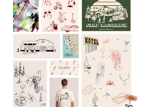 On-brand artwork for merch, packaging, PR mailers, and events.