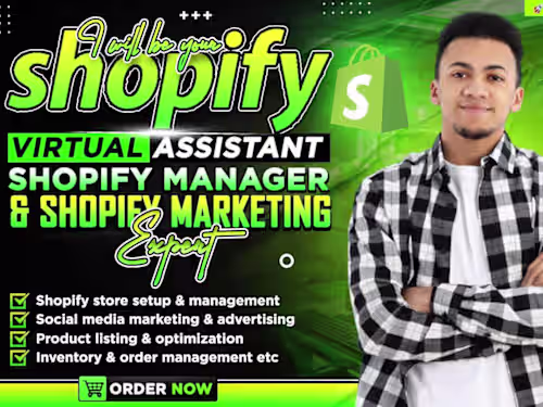 I will be your shopify virtual assistant and shopify marketer