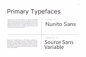 Font pairings that express your tone and improve readability. Includes heading, subheading, and paragraph font styles with usage guidelines.