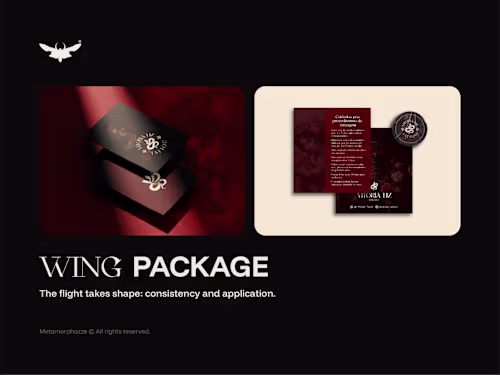 The Wing Package transforms identity into a functional visual system ready for the world. Following a process of immersion, ideation, development, implementation, and delivery, each stage balances aesthetics and strategy to position your brand with clarity and impact. Includes everything from the Cocoon Package +.