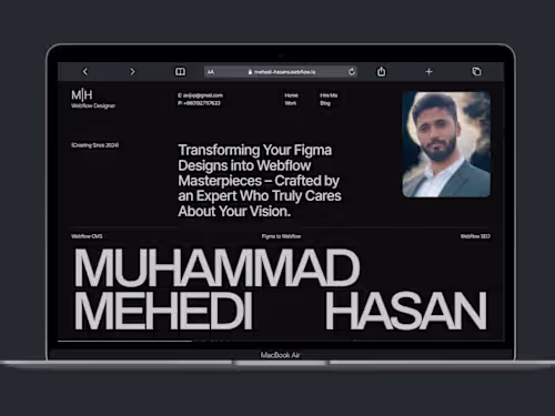 Service Description: Looking for a fast, scalable, and conversion-focused website to launch or grow your company? I help founders and teams design and develop modern, SEO-optimized Webflow websites that drive signups, boost visibility, and impress investors. From idea to launch, I bring your product story to life through clean, professional design and seamless Webflow development so your team can focus on growth, not bugs or bottlenecks. What’s Included in This Service: ✅ Responsive Web Design Custom design tailored to your brand, optimized for desktop, tablet, and mobile devices. ✅ Webflow Development Pixel-perfect development based on Figma or any design file you provide (or I design for you). Built with clean, structured classes using best practices (Client-First naming optional). ✅ CMS Integration Dynamic content setup (for blogs, case studies, team members, etc.) so you can easily manage updates without writing code. ✅ SEO Optimization Built with clean code, proper heading structure, meta tags, and fast performance to boost search engine visibility. ✅ Custom Interactions & Animations Smooth transitions and micro-interactions to enhance user experience and engagement. ✅ Easy-to-Manage Editor Setup Your team can update content using Webflow’s Editor without developer help. ✅ Training & Handoff Video walkthrough of how to manage and update your site post-launch, so you're fully in control. Deliverables: ✅ Fully developed Webflow website (1–5 pages depending on your requirements) ✅ Responsive layout (desktop, tablet, mobile) ✅ CMS setup and dynamic content structure ✅ SEO-optimized build (titles, meta descriptions, alt tags) ✅ Custom interactions and animations ✅ Webflow Editor access for content updates ✅ Final Webflow link (hosted on your domain or Webflow subdomain) ✅ Walkthrough video or live session (how to manage content) ✅ 7 days of post-launch support for bug fixes or minor tweaks