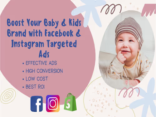Do you want to connect with parents and families searching for the best baby products and kids' clothing? I specialize in crafting targeted Facebook and Instagram ads that engage parents of newborns, toddlers, and young children, driving sales and boosting your brand's visibility. What I Offer: Custom Audience Targeting: Reach new parents, caregivers, and families with precision. Data-Driven Optimization: Maximize your ROI through carefully optimized ad performance. Detailed Tracking & Reporting: Stay informed with performance reports and track your campaign's progress. Conversion-Focused Strategy: Tailored ads to drive maximum sales for your business. Why Choose Me? Over 3 years of experience running successful ads for kids’ clothing and baby care brands. Specialized knowledge in the children's product niche, including baby clothes, toys, and essentials. Proven track record of increasing conversions and boosting sales for baby and kids' brands. Let’s work together to craft engaging ad campaigns that attract families and grow your business. Contact me today to create a custom plan for your brand!