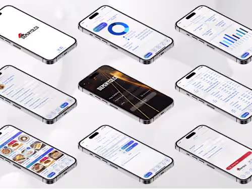 Initial low-fidelity wireframes outlining the app’s layout, structure, and user flow. This step ensures the design direction aligns with the client's vision before adding visual details.