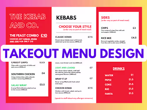 1 sided menu design, JPG/PNG, print ready PDF, Size: A4, A5, Custom