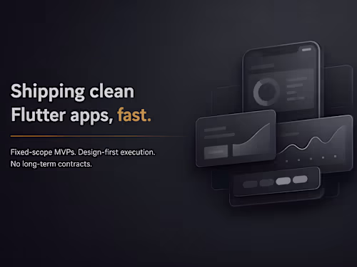 I help founders ship a clean, production-ready Flutter MVP quickly — without long contracts, retainers, or scope creep. This is a fixed-scope, one-time delivery service designed for early products that need to get out the door. What You Get • Flutter/SwiftUI app MVP (single platform: Android or iOS) • Up to 5 screens covering the core user flow • State management with a clean, scalable project structure • Backend integration (Firebase or REST API) • Authentication (one method: email / OTP / social) • Proper loading states and basic error handling Delivery & Handover • Production-ready build (APK / IPA), with handling deployment • Clean, readable codebase • Short Loom walkthrough (architecture + setup) • Simple setup documentation (README) Timeline • Delivery in 10–14 days, depending on scope clarity