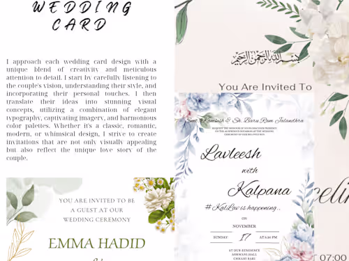 I understand the importance of first impressions, and I'm dedicated to creating invitations that perfectly reflect your style and theme. Whether you need elegant, playful, modern, or traditional designs, I'll work closely with you to bring your vision to life.
