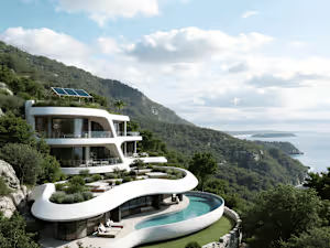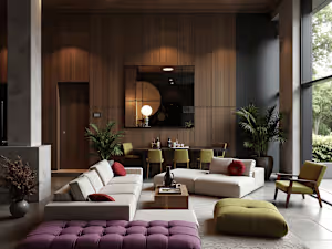 Photorealistic renderings of the completed design, including lighting, textures, and material finishes for client presentation.