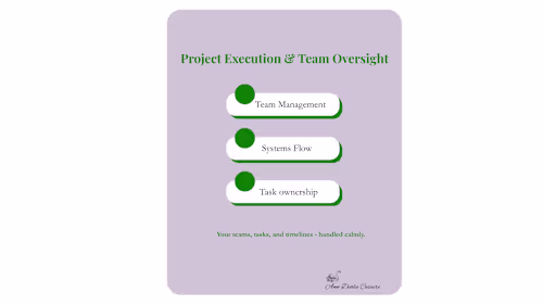 I’ll monitor your project timelines, adjust milestones as needed, and communicate shifts with clarity — keeping momentum aligned with goals.