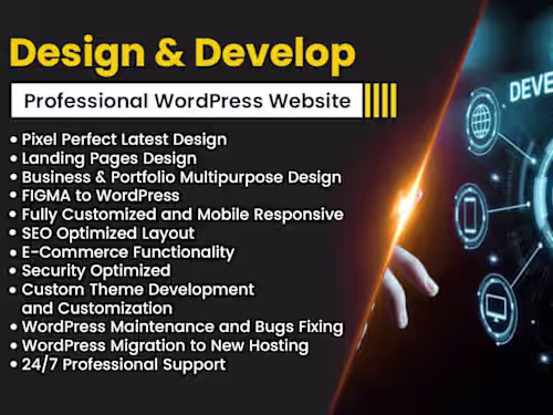A fully functional, responsive, and modern WordPress website tailored to your brand. Includes custom design, mobile-friendly layouts, plugin integration, SEO optimization, and easy-to-manage pages for seamless content updates.
