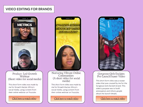 Working with Demilade was seamless from start to finish. She helped us repurpose our long-form webinar content on YouTube into engaging short-form videos for Instagram. Her edits were clean, timely, and optimized for social engagement. Communication was smooth, delivery was always on time, and the final videos helped us extend the life of our content. I’d happily work with her again.
