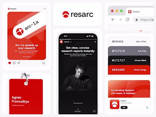 Tangible assets that extend your identity into the real world. This covers essential touchpoints like business cards, stationery, and apparel design.