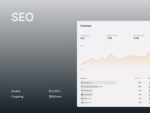 Full checkup of your site’s speed, indexing, Core Web Vitals, link structure, and accessibility — with a clear action plan for developers.