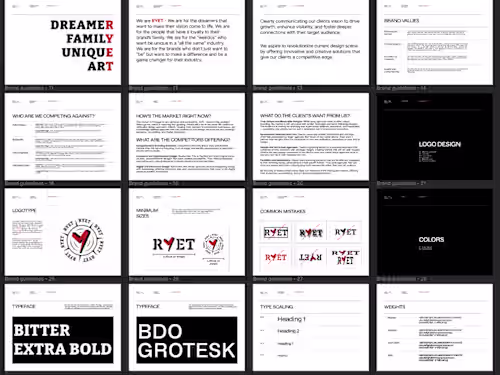 A complete brand identity system including logo variations, color palette, typography, and visual direction designed to create a consistent and memorable brand presence.