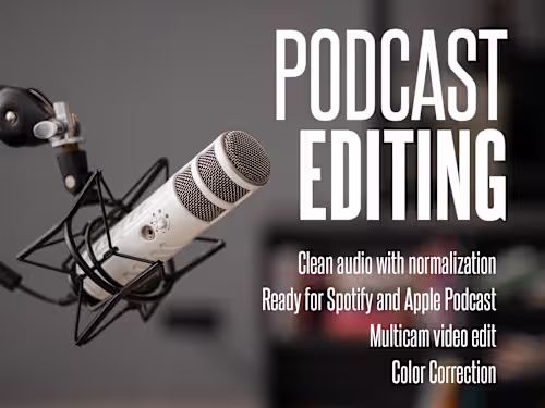 For podcasters who film their episodes, this deliverable is the visually polished, ready-to-upload video file for platforms like YouTube and Spotify Video. The edit will synchronize all audio and video tracks, incorporate any provided branding elements, and ensure a professional visual presentation. - Description: A complete video episode, color-corrected and edited to your specifications. This can include switching between multiple camera angles, adding intro/outro sequences, lower-third graphics (speaker names/titles), and integrating any B-roll or screen recordings provided. - Format: HD 1080p (or 4K, if specified) video file in MP4 format, encoded with H.264 for optimal web compatibility and quality. - Quantity: One (1) MP4 video file per episode. - Revisions: Up to two (2) rounds of revisions for minor visual adjustments (e.g., timing of graphics, camera angle changes). Major structural changes or addition of new graphic elements may incur additional costs.